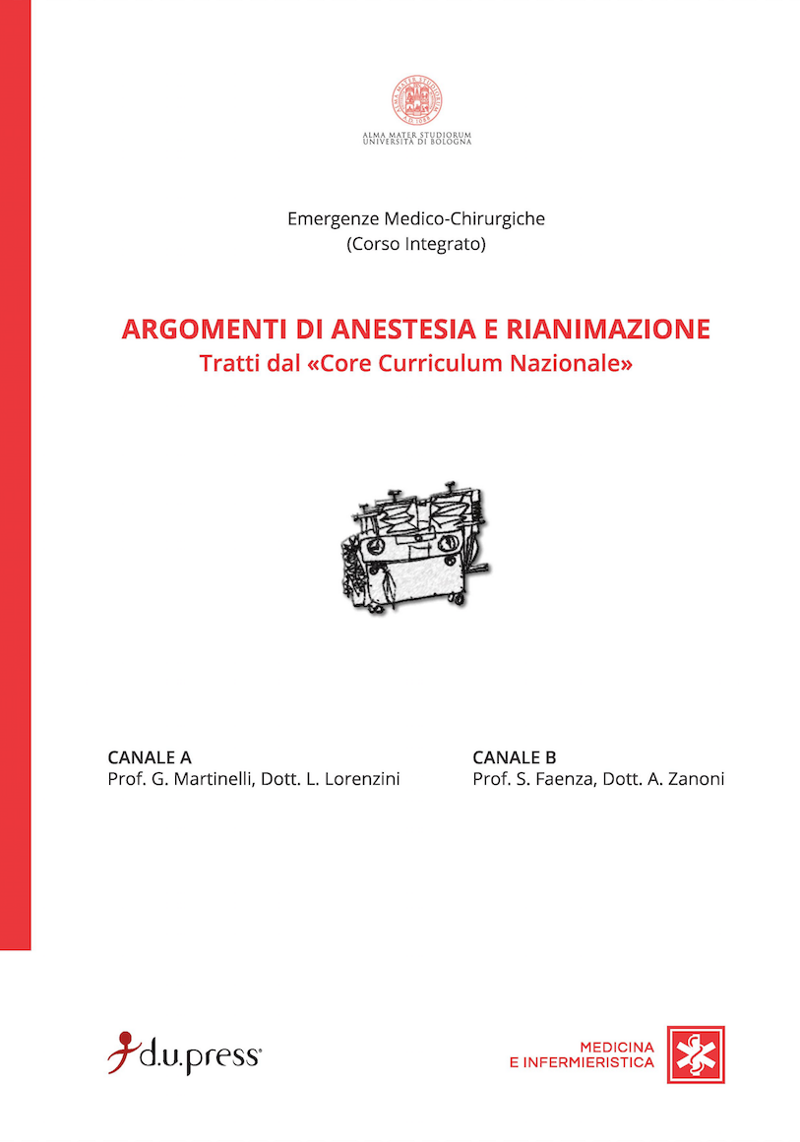 Per il corso integrato "Emergenze medico-chirurgiche", sono state raccolte nel presente volume, le lezioni sull'anestesia e rianimazione, nell'intento di facilitare la preparazione degli studenti del VI anno. La dispensa contiene i temi proposti dal "Core curriculum nazionale" e tratta argomenti specifici inerenti il "rianimando", definibile come paziente acuto e grave, con una o più funzioni vitali deficitarie, in imminente pericolo di vita e che abbia probabilità di recupero. Questa tipologia di pazienti si avvale delle terapie straordinarie, delle tecnologie più sofisticate e dei "devices" più moderni, nonché di personale specializzato e dedicato che opera nei centri di rianimazione. Questi sono reparti speciali nei quali, in continuità temporale (365 giorni all'anno e h 24) si combatte la battaglia per strappare alla morte pazienti acuti e gravi colpiti dalle più diverse patologie. Offrire agli studenti le conoscenze di questo particolare segmento della medicina, portarli in un settore nel quale, accanto alla delusione per la perdita di un paziente, si possano recepire le soddisfazioni derivanti dalle battaglie vinte, farli avvicinare a questi ambienti attraverso il tirocinio, sono il triplice obiettivo che la dispensa, le lezioni e le esercitazioni tengono a perseguire.